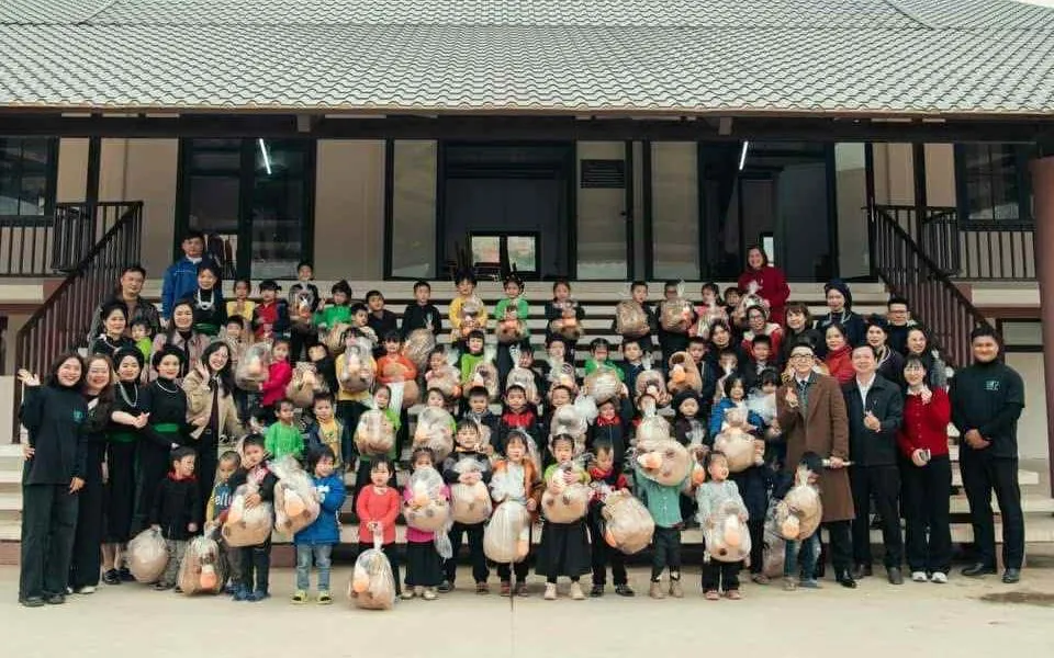 Thông qua Quỹ Tấm lòng Việt, công ty M-TP Entertainment hỗ trợ 1,5 tỷ đồng xây dựng điểm trường liên cấp Mầm non và Tiểu học mới cho thôn Làng Nủ, xã Phúc Khánh (Bảo Yên, Lào Cai).